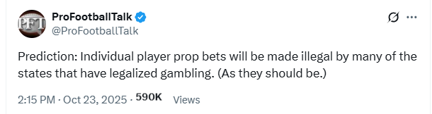 😂 Here is the second-dumbest take. Player props are, essentially, single-serving fantasy football. They’re not going anywhere and should not be illegal. Because once they are, they’ll take place in the unregulated markets. Are they going to ban fantasy football, too, Mike? LOL.