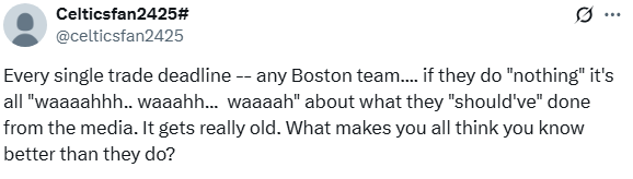 The replies were the perfect mix of optimism, delusion, anger, finger-wagging, and hate; hate toward me for suggesting that I was annoyed the Patriots had not tried to improve at the NFL’s trade deadline.