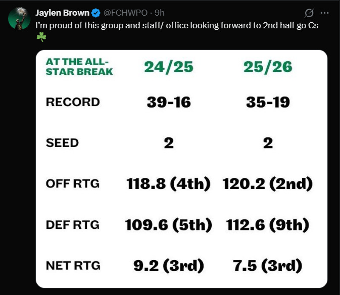 As much as, if not more than Stevens, credit Joe Mazzulla. I don’t believe many teams would lose a Top 5 player, respond this way, and end up in this position. His ability to mix in all these new pieces without Tatum has him in Coach of the Year conversations, rightfully so. With Tatum back practicing and looking more and more like a March return, this team can win The East. Pistons? Knicks? Cavs? I’d take a healthy Tatum and the Celtics over all of them.